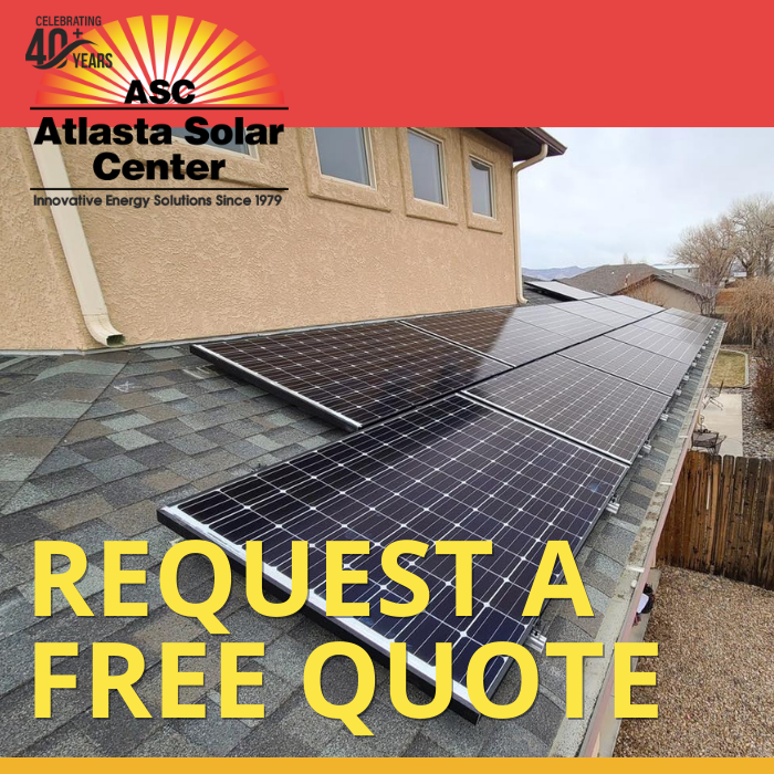 Atlasta Solar Center has been serving the Mesa County area for over thirty-five years. As the oldest solar company in Colorado we are dedicated to providing our customers with a quality experience while transitioning over to a new energy-efficient lifestyle. Our vision is one of businesses, homes, neighborhoods, communities, powered by the clean, sustainable energy of the sun at a cheaper cost. With over two thousand systems installed, we think were doing a pretty good job! We at Atlasta would be honored to help you join the revolution of clean, cost effective energy.Atlasta Solar Center (ASC) was founded in 1979 and is unique in that it is owned by its employees. The company specializes in the installation of solar panels, battery storage systems, and electric vehicle chargers for both residential and commercial properties. ASC offers a comprehensive range of services, from initial contract discussions to installation and ongoing maintenance. |