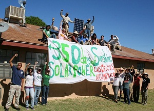 The effort was part of 350.org’s international 10/10/10 day of work. More than 7,000 events designed to give people an opportunity to “work” on ending global warming were scheduled around the world. The organization estimated that more than 100 solar panels would be installed around the globe on Sunday as part of the event.