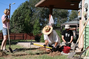 City Councilman Miguel Silva even got his hands dirty. He was digging a hole to bury an electric line from the new panels and struck water.