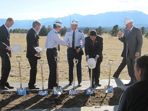 With that, the dignitaries behind the solar project strapped on hard hats and struck into the ground on the southern edge of the Air Force Academy with silver shovels.