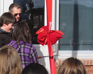 With that, Adams invited students to help cut the ribbon and hands shot up across the lawn. Some of the older kids jeered when Adams selected fifth graders. But they all clapped when the ribbon was severed.