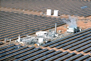 The Genesis project will consist of two 125 MW steam turbines. A vast series of parabolic, mirrored troughs will concentrate solar energy on tubes filled with a liquid like molten salt in a closed-loop system. The closed loops pass through a heat exchanger where they will superheat water into steam, which will be used to generate electricity.
