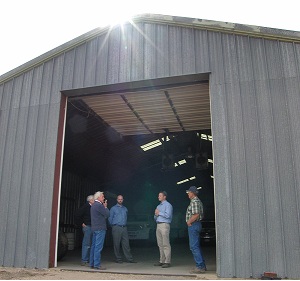 Pictured: Jones talks with Town Administrator L. Wayne Snider inside the opening of the Diven cannery under a bright sun.