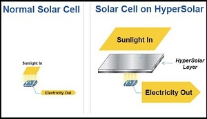 One such company, HyperSolar, Inc.(OTCBB:HYSR), recently announced its first prototype design, which can increase the amount of sun hitting a silicon photovoltaic by 300 percent through a magnifying top sheet made of inexpensive plastics.
