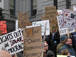 Pictured: Although today's hearing was on the quiet side, Feb. 25's protest of Xcel was not.