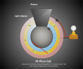 “Up to 30 percent of incident sunlight is currently reflected off the surface of conventional solar cells, and more is lost inside the solar cell materials,” Solar3D said in a press release.